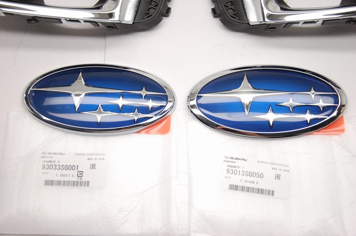 メッキパーツとエンブレム左右のモールをスバル純正色「クリスタルブラックシリカ」(カラーコード:D4S) の艶あり仕上げに、