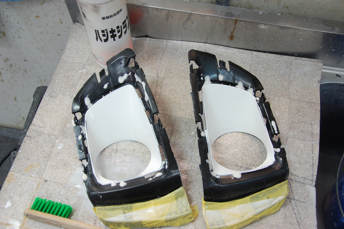表側からだけだと奥が綺麗に塗れないので裏側からもスプレーするようにしています。
