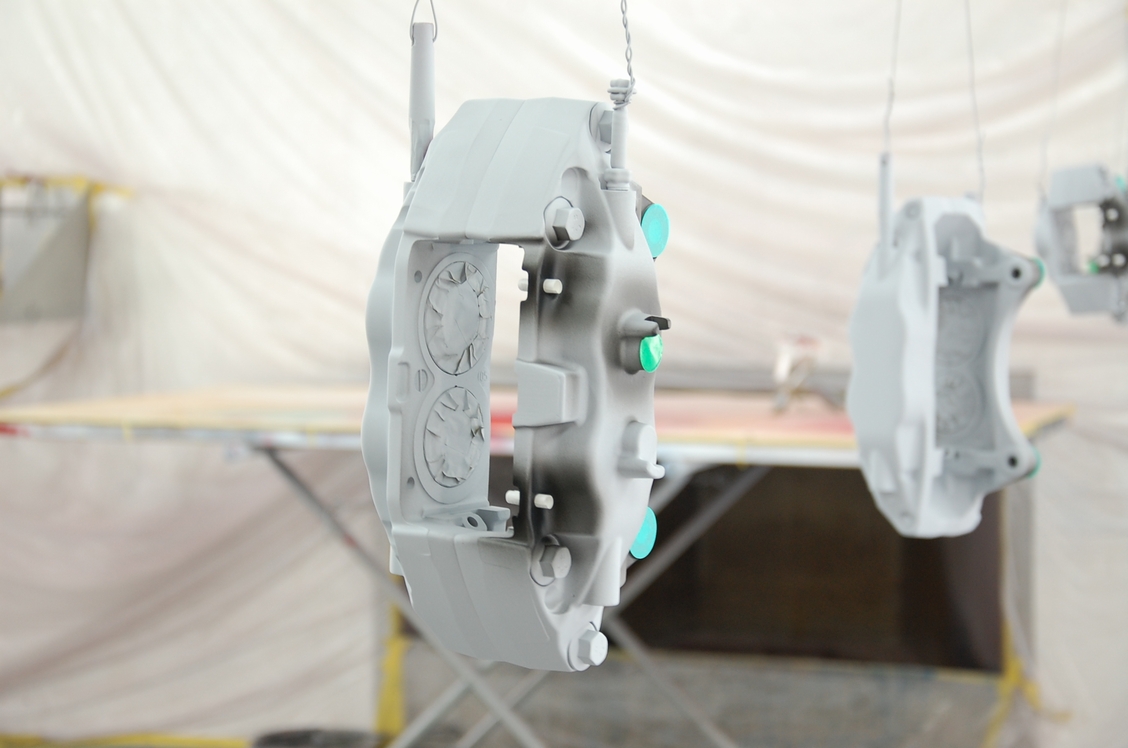 キャリパー全体をシリコンオフで洗い流すようにして脱脂処理をし、本塗り準備完了です。