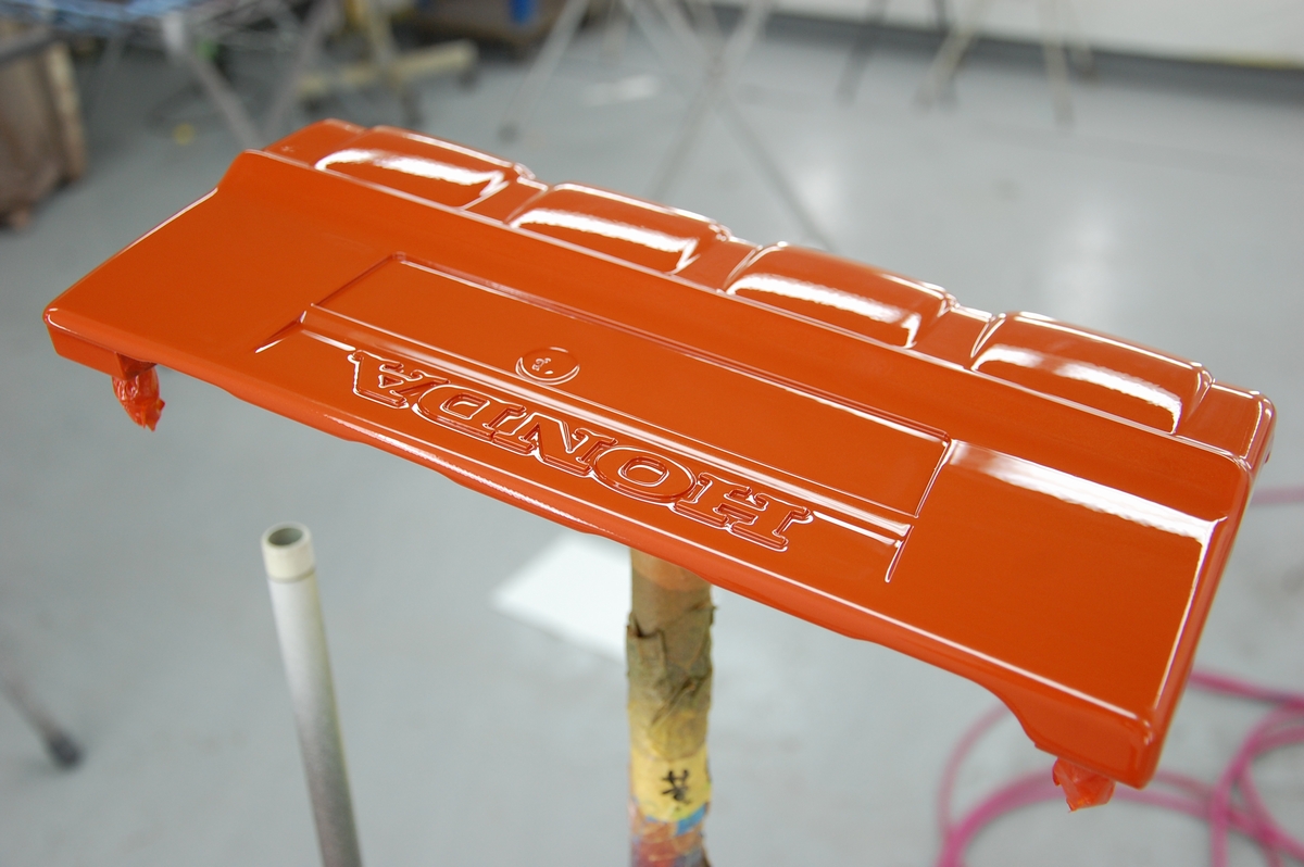 大変お待たせしました!先日本塗りを終えていたホンダ樹脂製エンジンカバー(恐らくはCR-Z用) の塗装、本日完成となります。