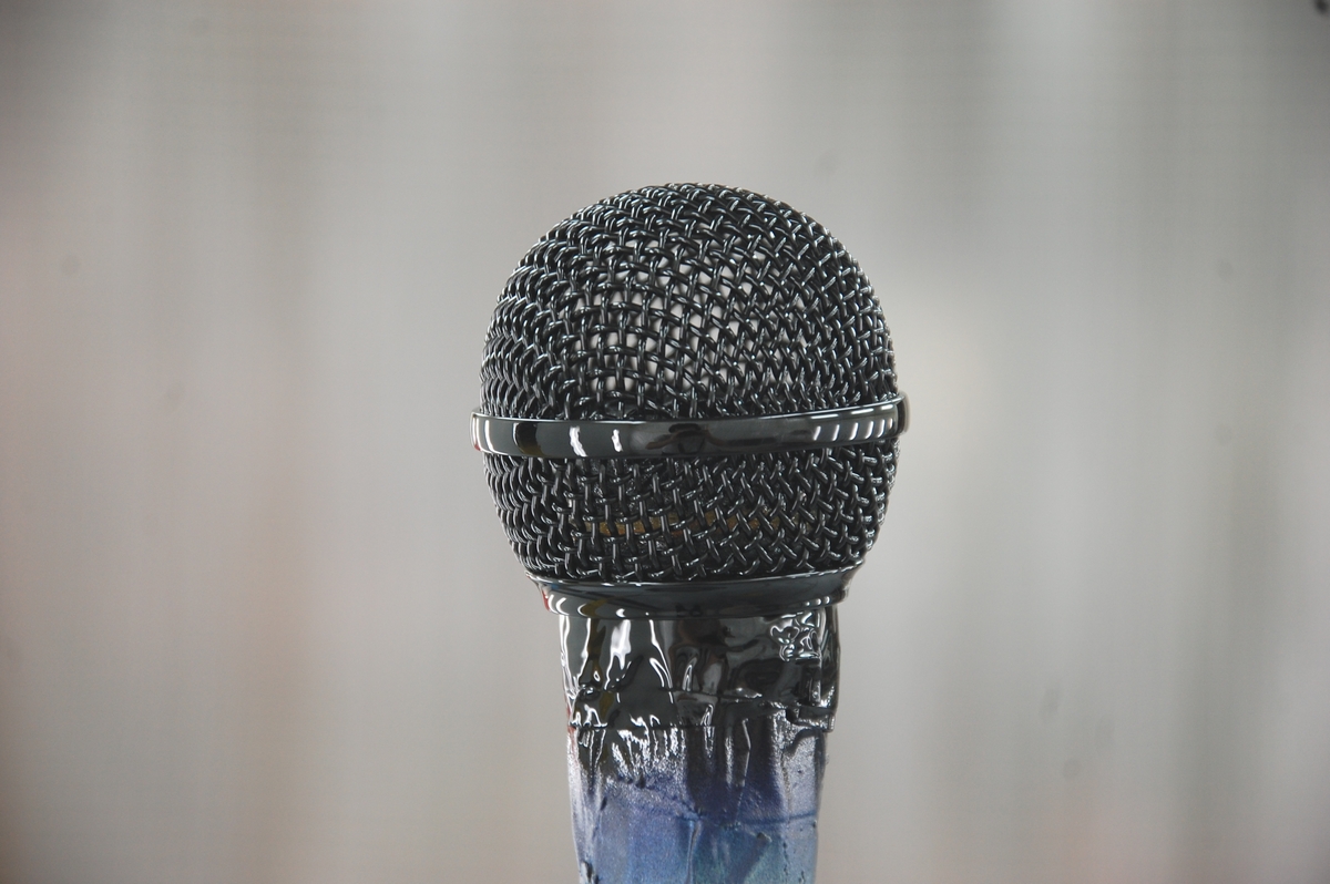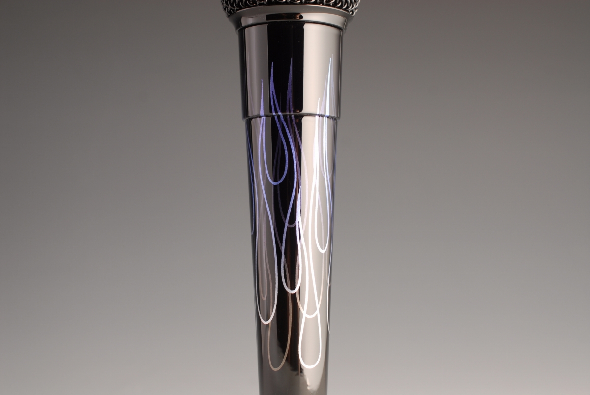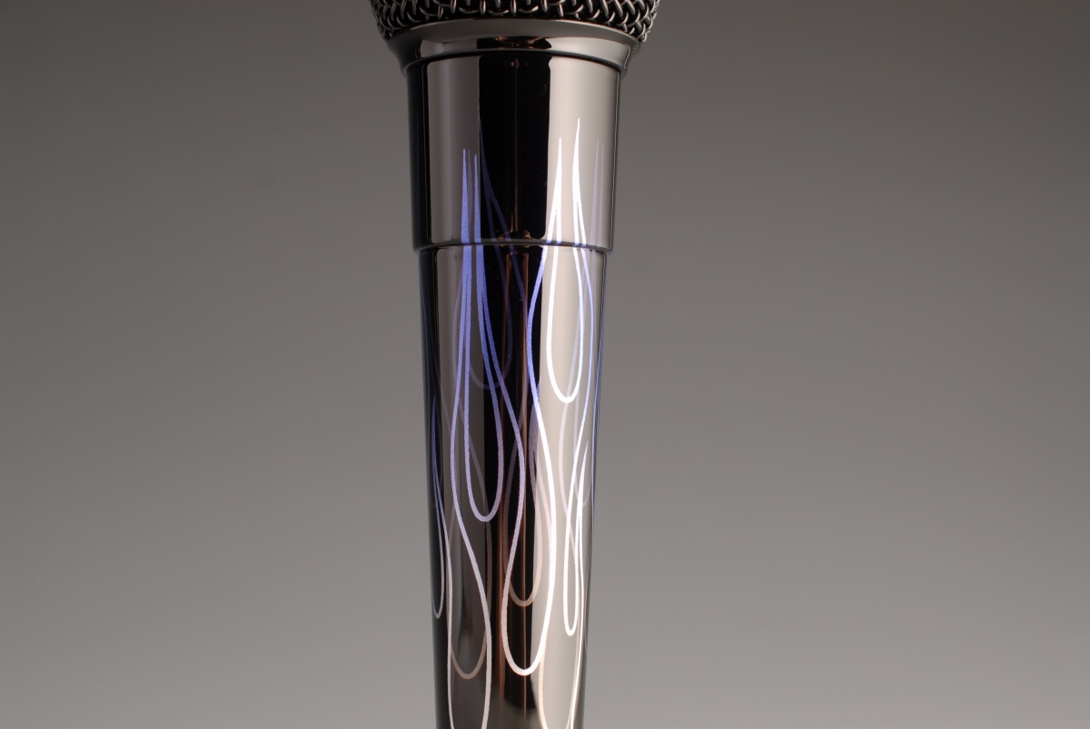 尚、マイクに元々あったロゴは印刷では無く「レーザー彫刻」(レーザーマーキング)で表現しているので、研磨してその段差を取り除くと金属素地が露出します。