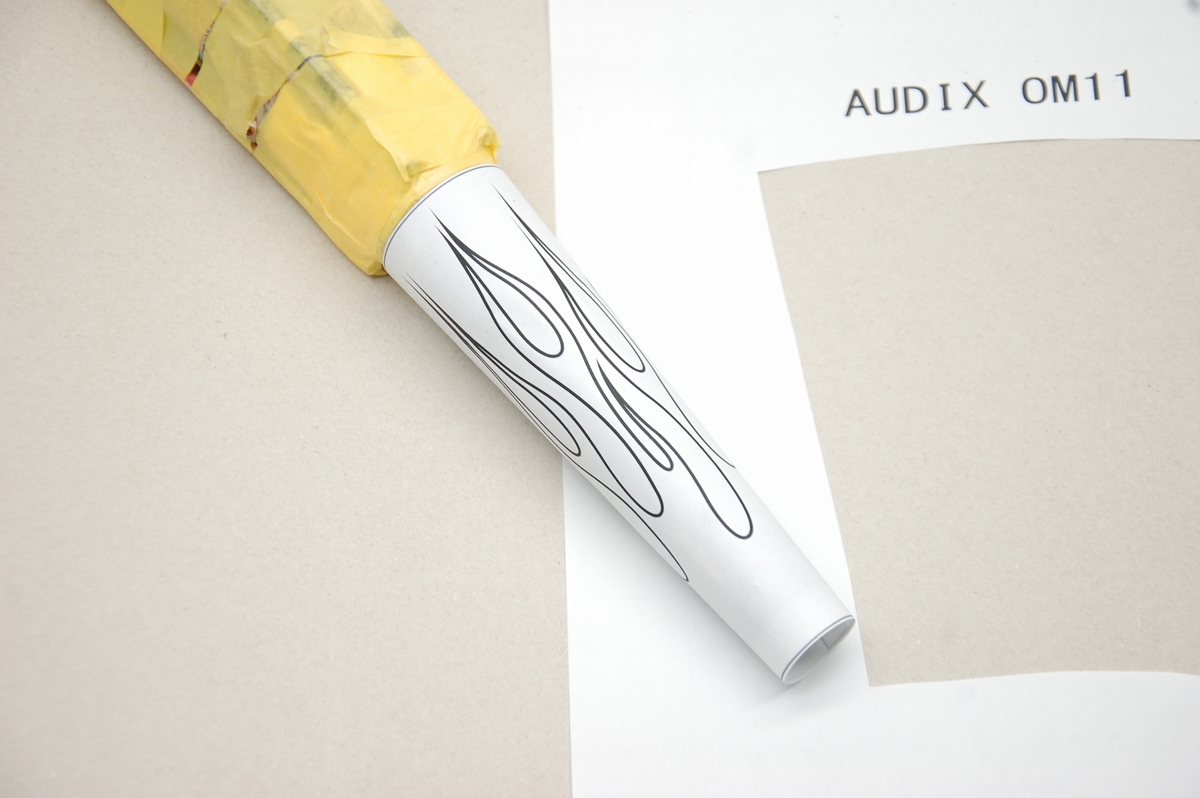 元々はSHUREのSM58用に作ったデータを、マイクのサイズに合わせて縦に長くして修正しています。念のため印刷した紙をマイクに当てて確認しておきます。