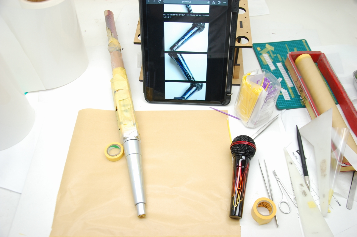 この型のマイクは途中に段差(つなぎ目?)がある為、そこのマスキングが浮かないようしっかり貼っておきます。
