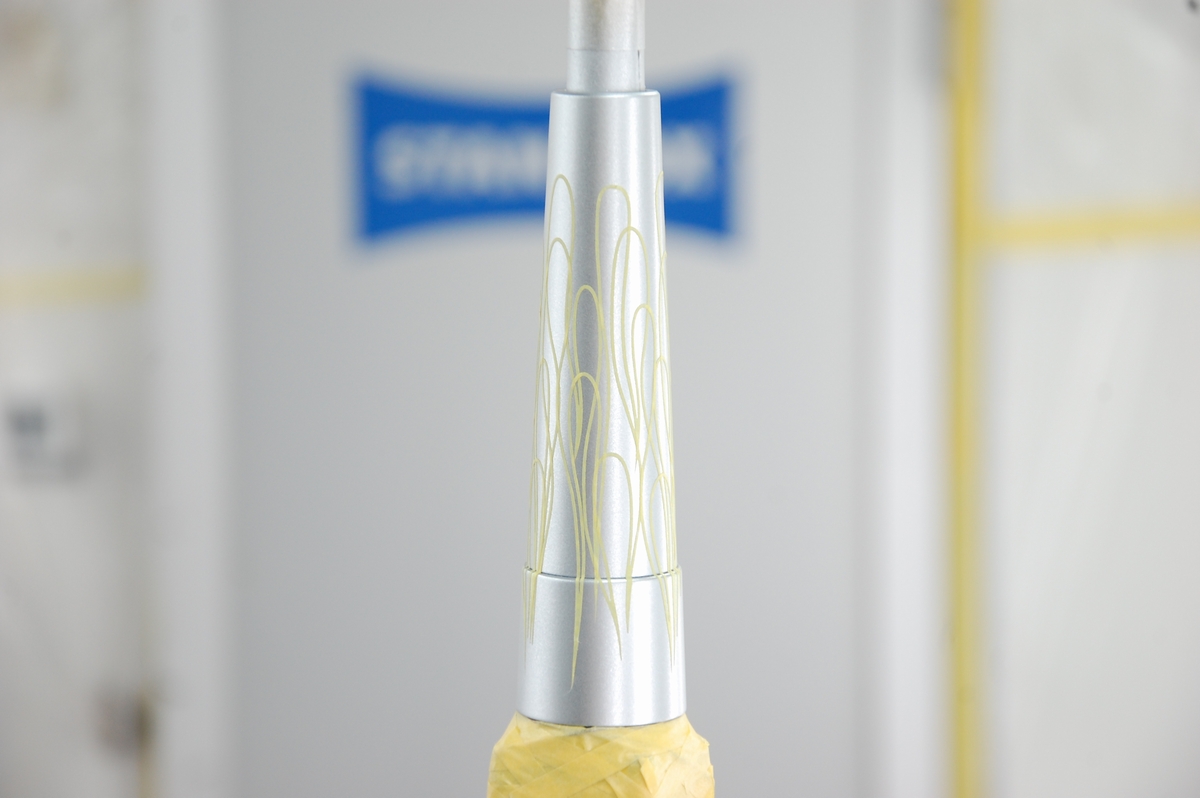 シルバーが乾いたら場所を工場二階に移し、ファイアーパターンのマスキングを行います。