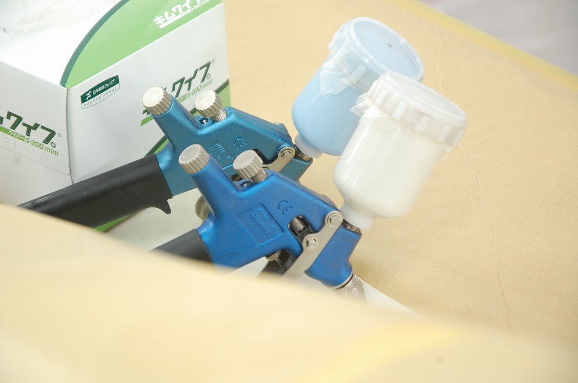 塗る順番としては、最初のプライマーと同様に先に内側を塗るだけ塗ってからひっくり返し、表側を塗るだけ塗ったら再び裏側をこの状態で塗るといったやり方です。