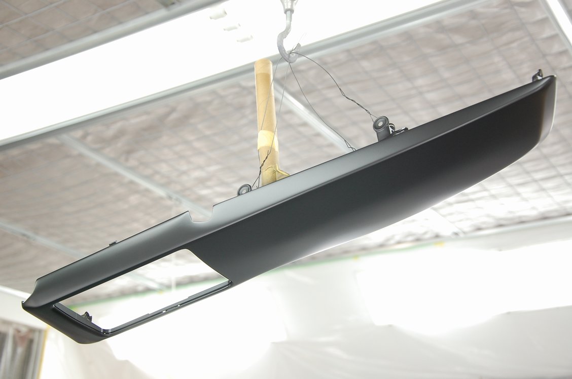 脱脂洗浄後、溶着して取り付けたモニター枠部にプラスチックプライマーを塗布し、本塗り開始です。
