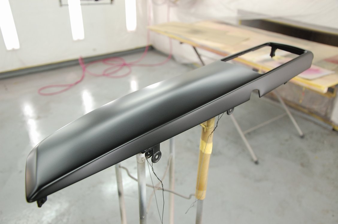 先日カーボンシートを剥がしてサフェーサーを塗っておいたスバルBRZのインテリアルパネルです。表面には黒のガイドコートを塗っています。