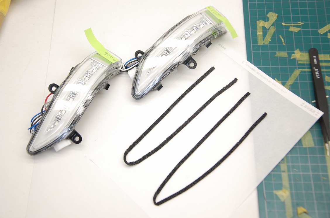 またレンズ下側にあるウェルカムランプ部分のクリアー抜き(マスキング)を承っておりましたので、サイズを測ってデータを作製し、