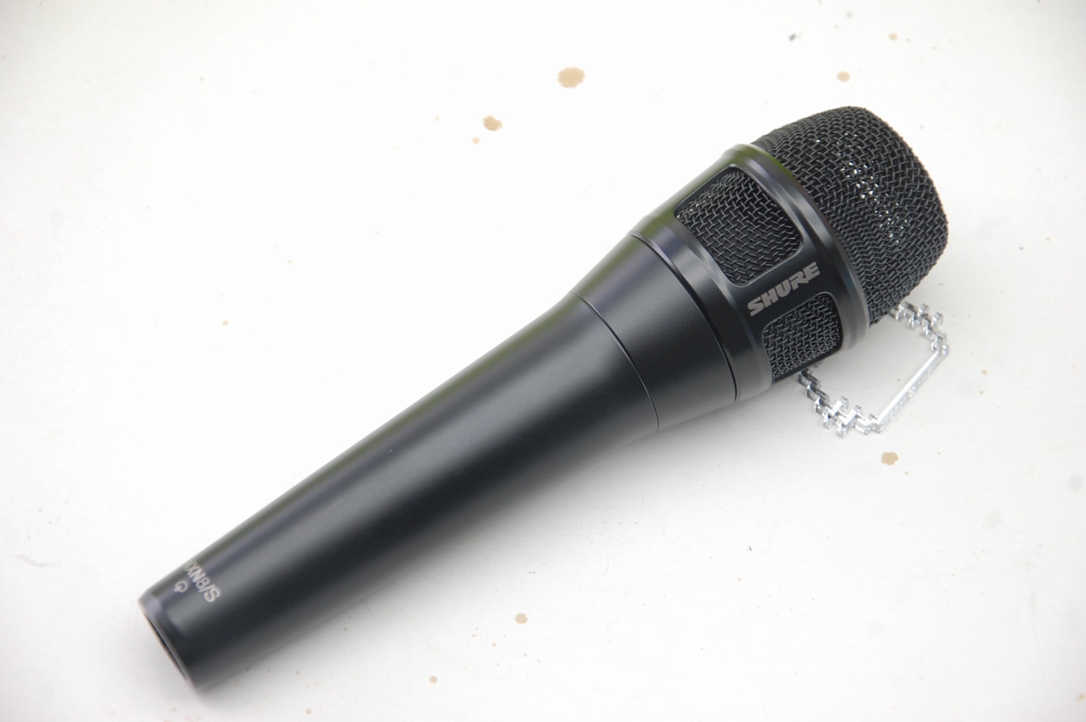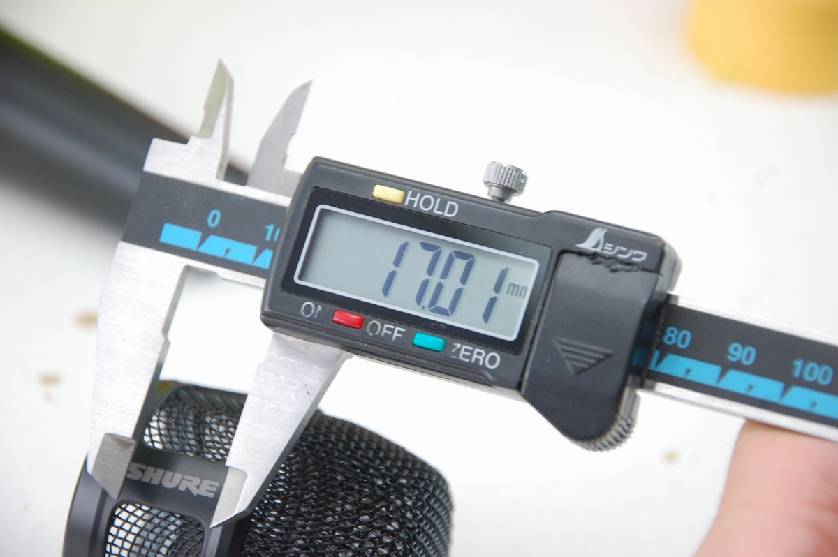 その後は先に塗ったマイク本体にこちらのグリルを装着して中心位置を決め、SHUREのロゴ位置に合わせてマイク本体にオリジナルのロゴ入れ→クリアー塗装を行います。