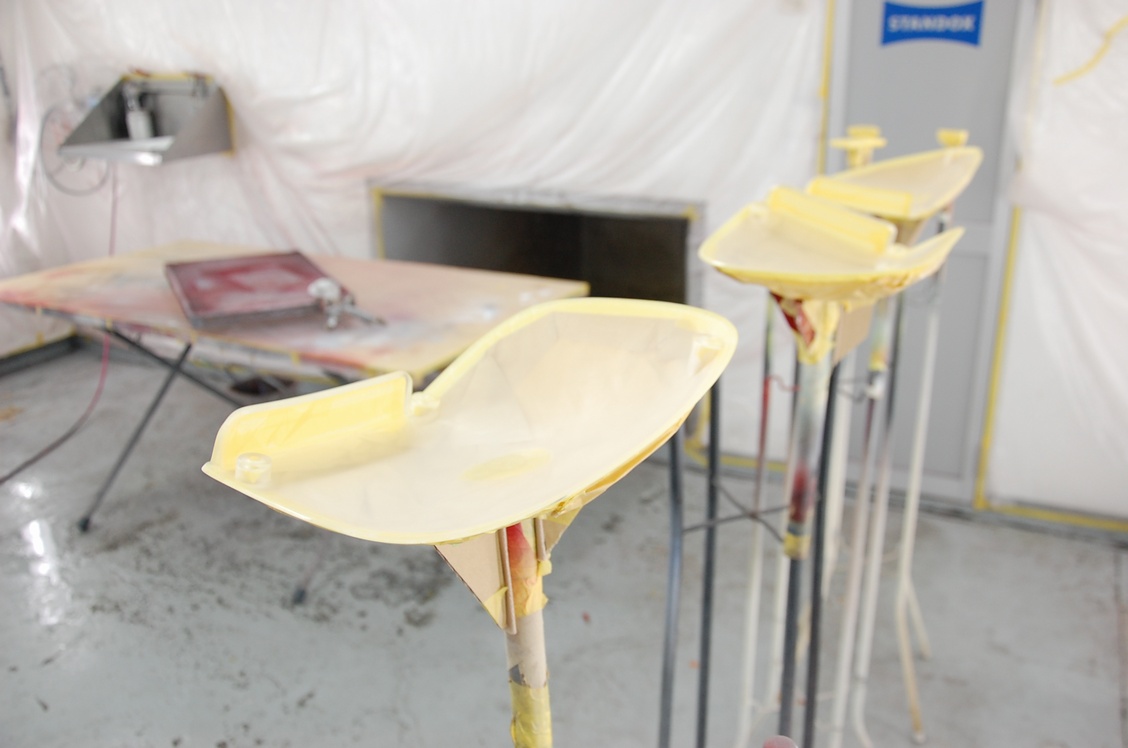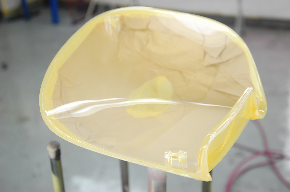 これらのパーツは経年劣化と裏側の汚れ・傷等が激しいので、表面とは別に裏側にもクリアーを塗装します。