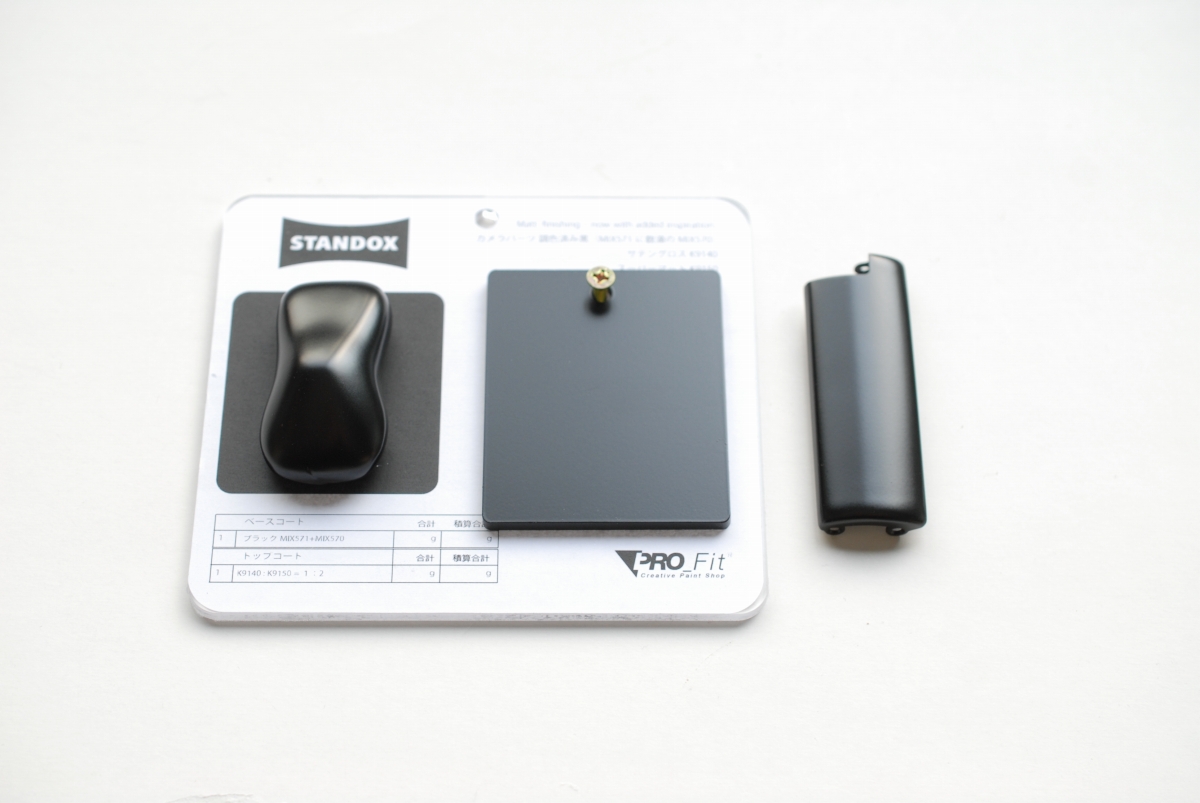 ちなみにグレーでは無く直接ご指定の色=ホンダミラノレッドを塗る事も可能なのですが(その場合ベースコートの赤+クリアーでも問題ありません)、今回使ったプライマーの肌目が出てしまっている事、艶引けする可能性があると言う事で一旦隠蔽し易いグレーで完成させ、完全硬化後に改めて足付け処理をして本塗りという方法にしました。