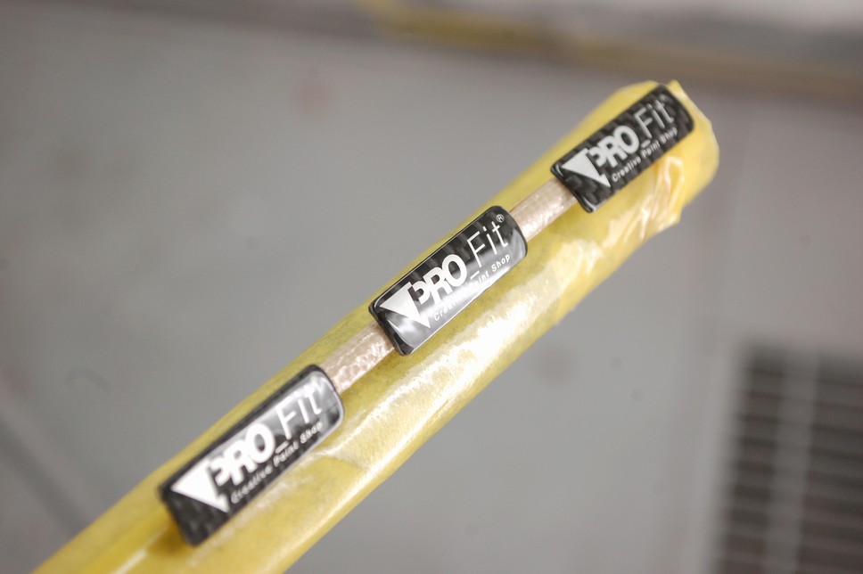 profit54 ようやく架橋に入ってきた自家製カーボンエンブレムですが、実は先日仕事で行った内装パネルの塗装と一緒に最後の本塗りも終えています!と言ってもまずは3個だけですが・・・(少)。
