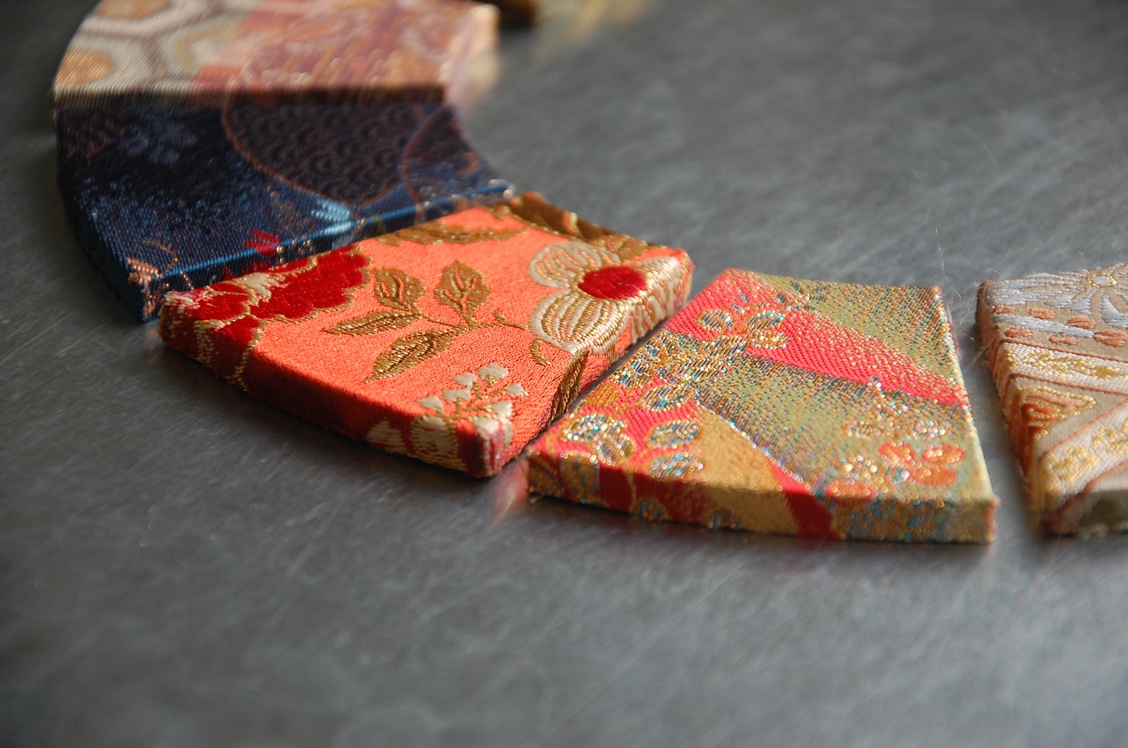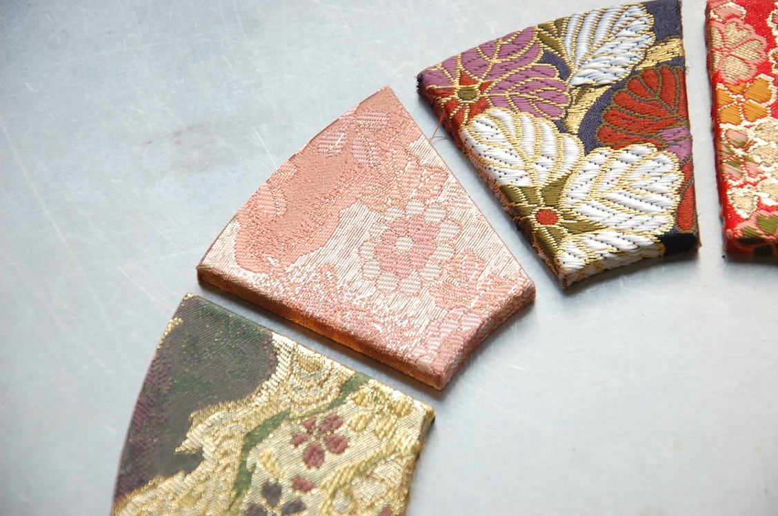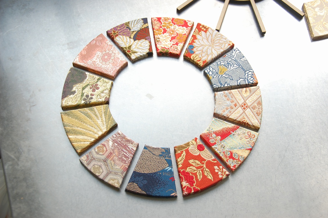 西陣織を使ったファブリックパネルというは既に作っている方がいらっしゃいますが、さすがにこのような形状では誰も作っていなかったので、多分面白いだろうと思い今回試してみた次第です。昨年行った京都がとても良かったので、それに関係した物を作って見たかったという事もあるんですよね。