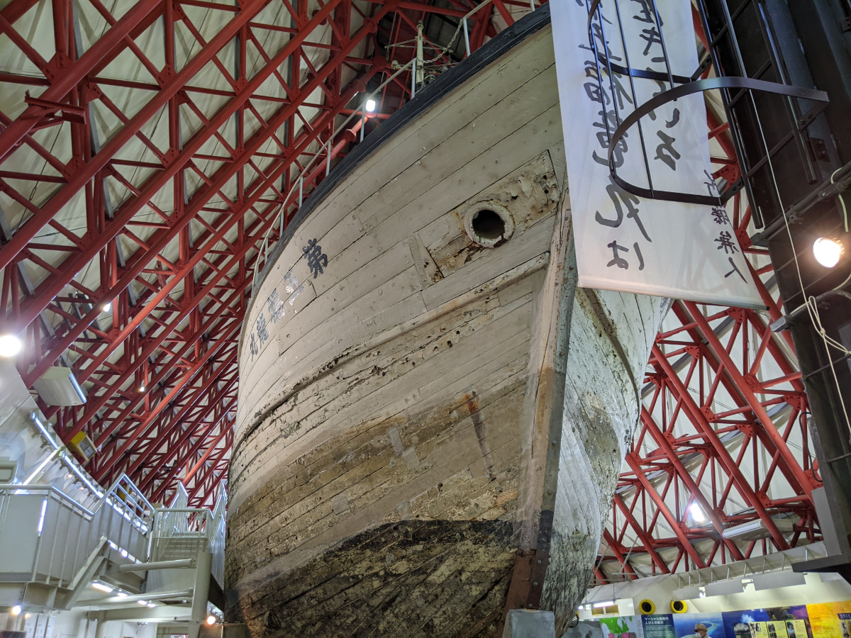 第五福竜丸は水爆の放射能で乗組員が被ばく事で有名ですが、展示されていた資料を見ると、その後東京水産大学の練習船として普通に使われていたという事を知って驚きました。てっきり被ばくして使い道が無くなった物がそのまま保管されているのだと思っていました。