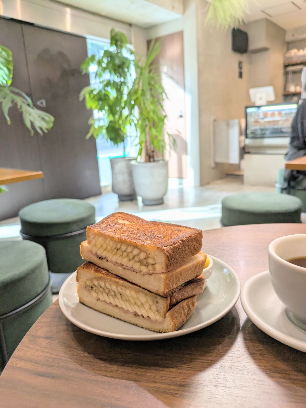 バナナとベーコンの組み合わせなんて普段は絶対選ばないですが、早朝ウォーキングはこういった事もイベントのひとつと言うかアクティビティな感じにしていて、しかし予想に反してこちらのサンドイッチめっちゃ美味しかったです!