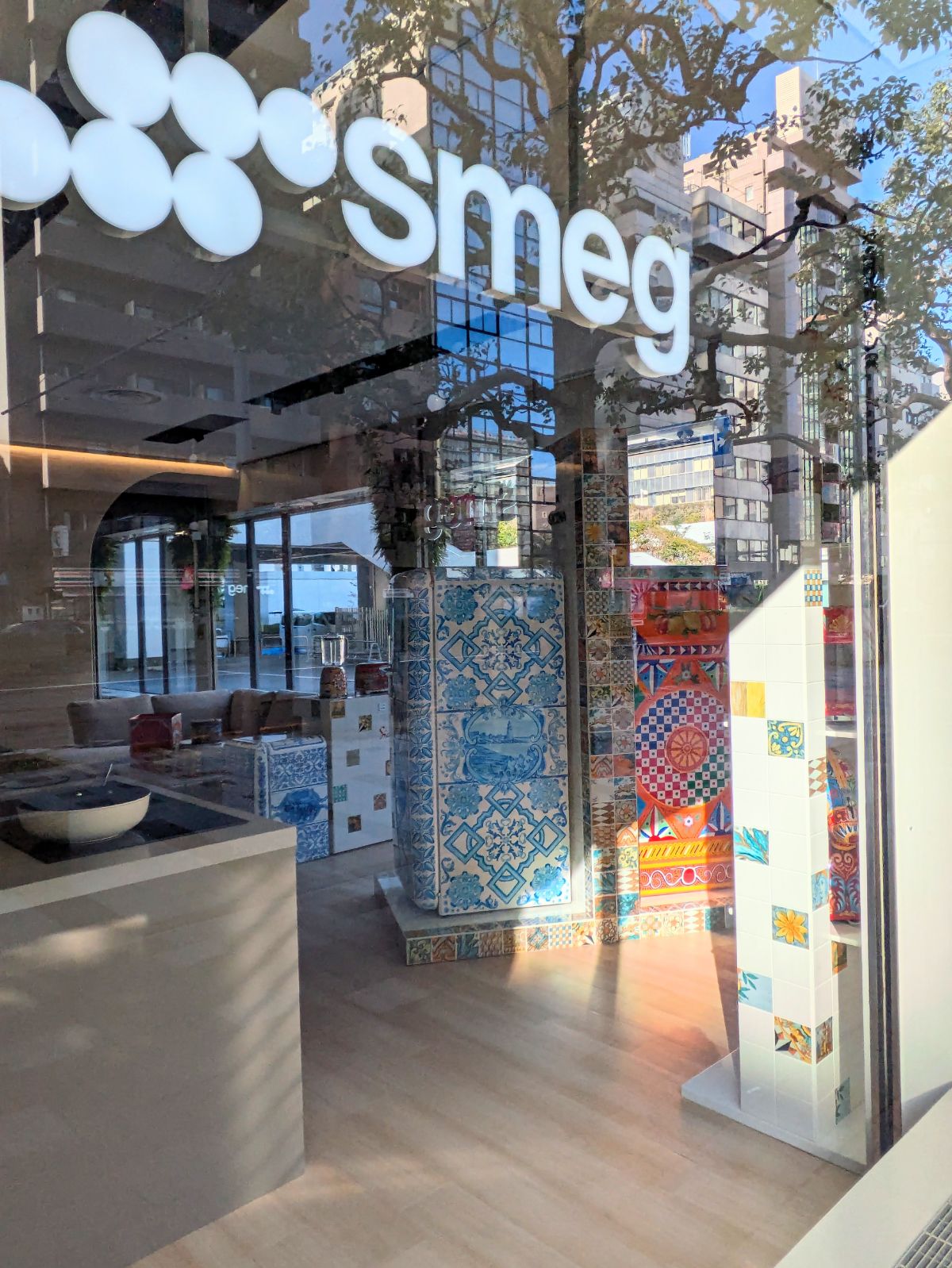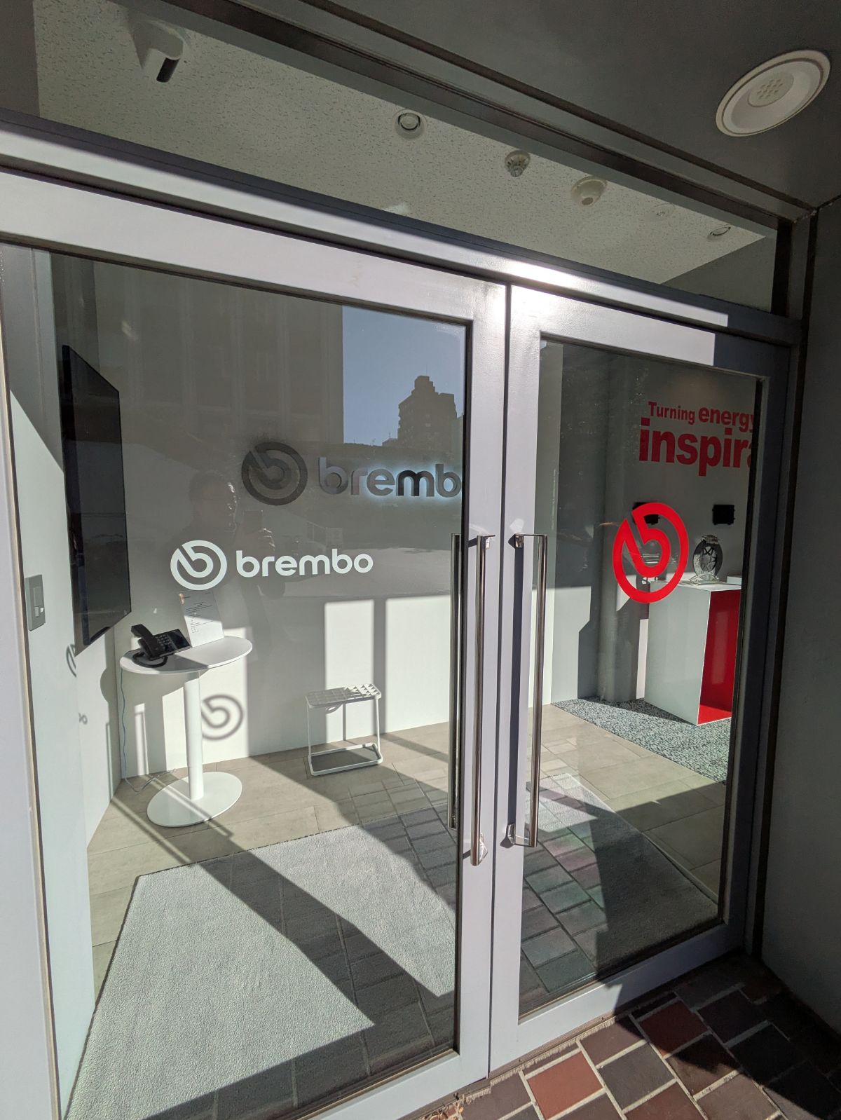 ガラスの窓際にキャブなど見知ったパーツが並んでいたので入り口を見てみると、格好良いベスパが!
