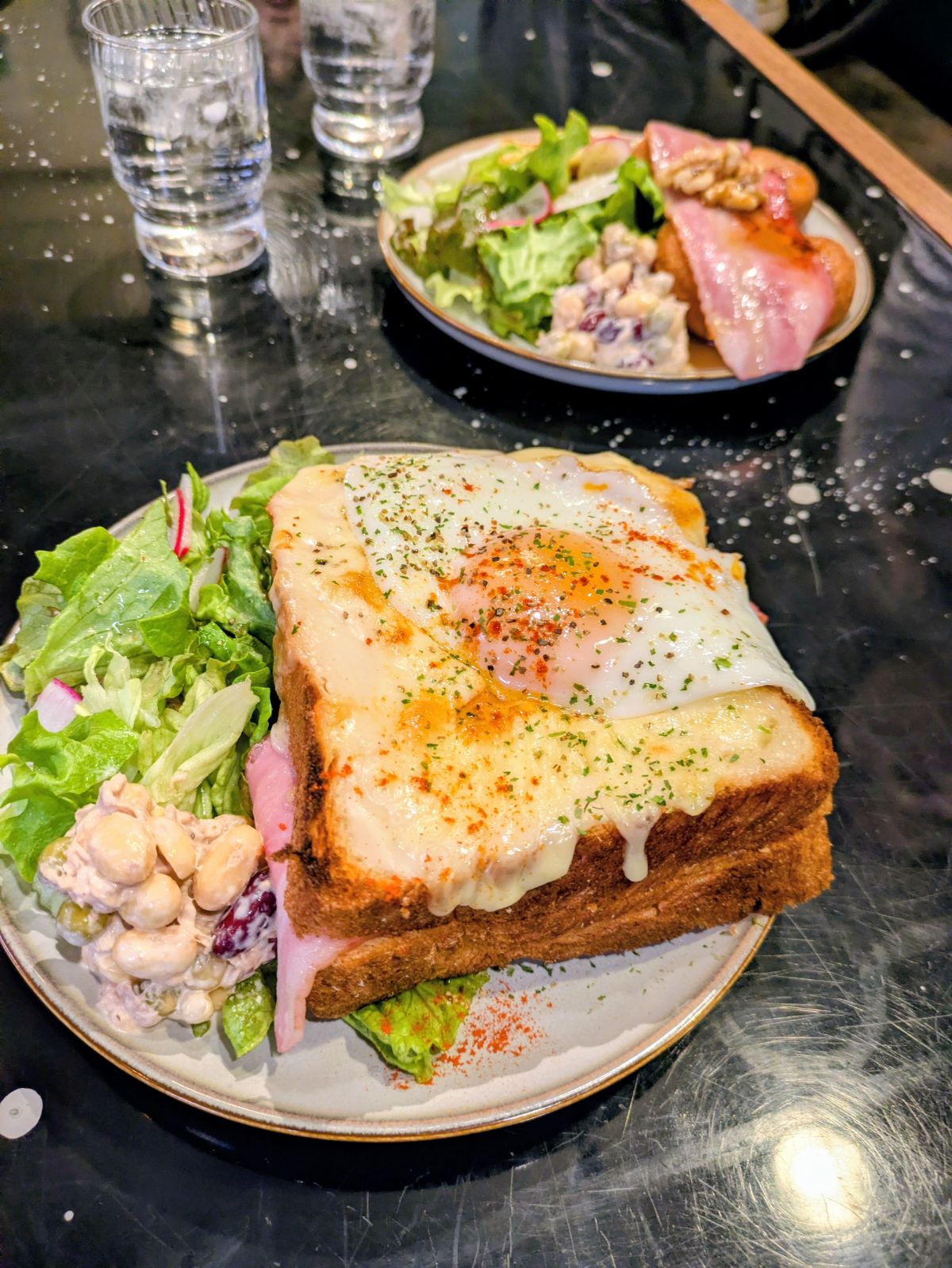 注文したのはクロックマダムと、飲み物はお気に入りのコロンビアのスペシャリティ珈琲を頂きました。こちらは料理も珈琲も美味しいので渋谷で食べられなかったのは結果オーライだったかと。