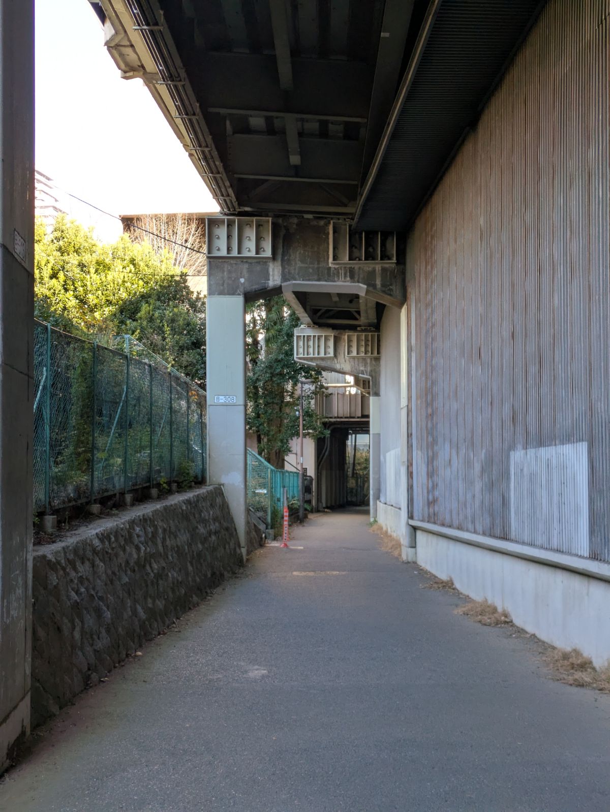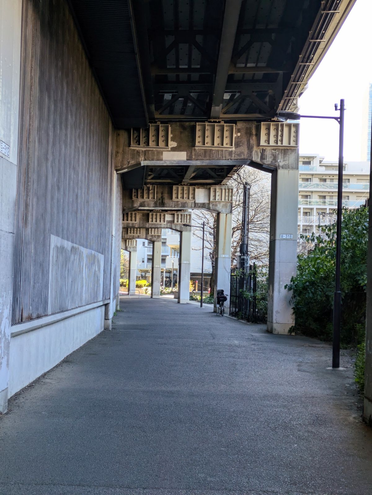 自然教育園の脇を通って首都高目黒2号線の下を歩きます。無骨な感じと不思議な風景が面白い道です。