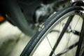 ガラスの窓際にキャブなど見知ったパーツが並んでいたので入り口を見てみると、格好良いベスパが!