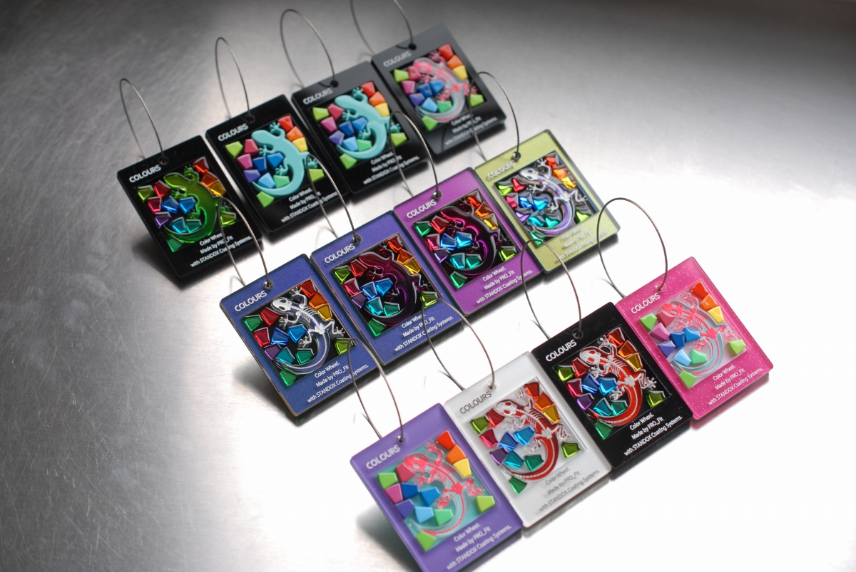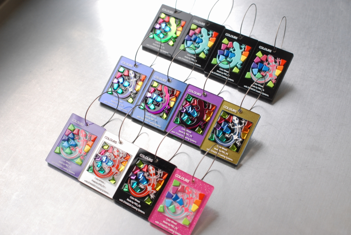 元々はこの様な色相環の形に揃えた色見本キーホルダーだった物を、