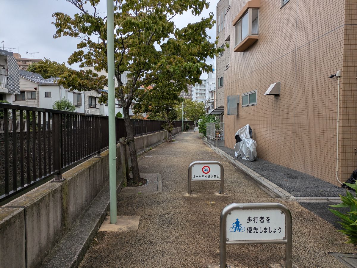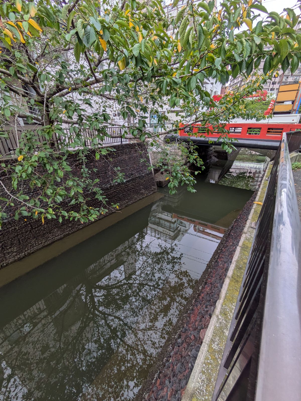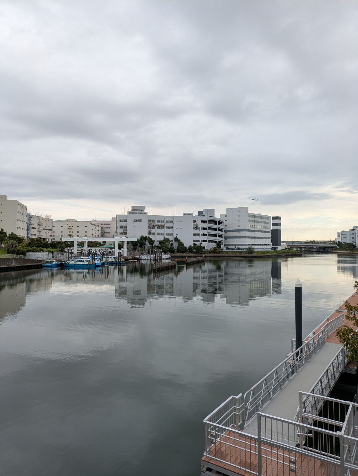 誰か一緒に行く人が居れば電車に乗ってカフェなどに行くのですが、一人の場合は工場近辺を歩いてその辺で適当に休憩をする感じです。工場付近には旧呑川緑地公園があって、海に向かって行くには丁度良い散歩道になっています。