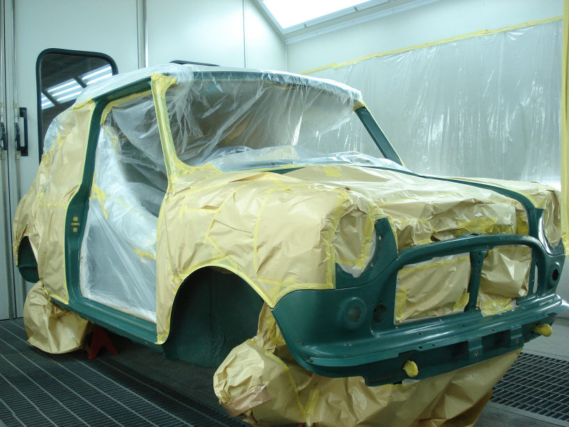 ちなみにこちらのミニ、外装的には特に悪い所も見当たりません。今回の内容は、「サファリパークを走っている業務車のようなシマウマ模様に」との御依頼です。少し変わった御趣味だと思われがちですが(失言すいません…)、媒体となる車体が「Mini」であればこれは結構許されたりします。以前記載した事でもありますが、ボンネットにユニオンジャック(英国旗)の模様をペイントして普通に走れる車などミニくらいですから…。今回の案も極めて個性的で私的にもアリだと思います。