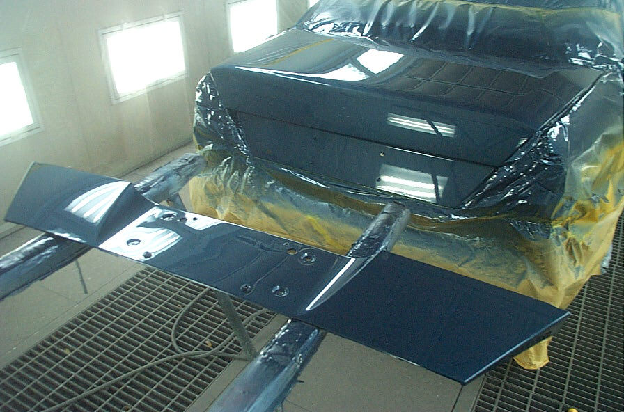 大変お待たせしております。リヤバンパーは先ほどサフェーサーの塗布まで完了致しました。こちらの画像は先日まだ天気の良かった時です。