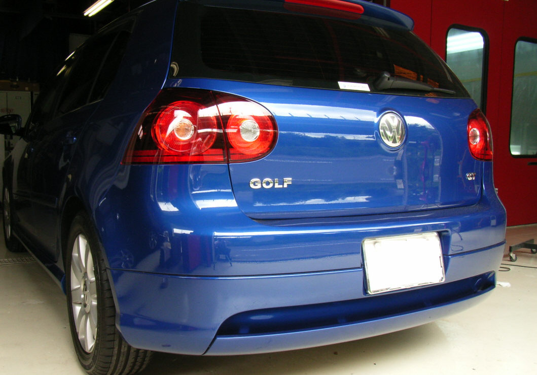先日はご足労頂きありがとうございました。掲載が遅れて申し訳ございませんでした。無事出庫しましたゴルフ5です。補修箇所は左フロントフェンダー・フロントドア・リヤドアになります。 テールランプは「VWM」さんで購入したR32用の「ダークテールレンズ」に変更しているそうです(気付かなくてすいませんでした…)。