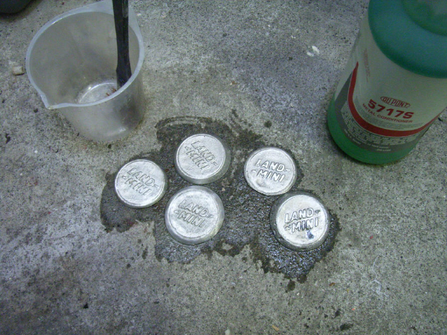 大変お待たせいたしました。ついに鋳造画像アップです。アップ出来なかった理由として、「知的所有権」(著作権)の申請がまだ下りていなかったのですが、本日無事認可されました。「認可」と言ってもこれは特許のように面倒な手続きはありません。自分のアイデアやネーミングなどを考えた(申請した)日付などを「第三者機関」によって証明して貰う為の申請です。書類が¥400で、申請料は¥3,000、あとは現金書留費用くらいです。書類を作るのが少々面倒なくらいです。 「LM mini」企画とは「LANDMINI」企画の事で、今回の「LAND_MINI」の製作にあたっては、当初より企画書やデザインを形(書類)として作成してあり、これらを提出しただけだったので比較的申請は簡単でした。 「LAND_MINI」とは、「LANDROVERなMINI」がコンセプトとなっております。さらにそのLANDROVER社の「DISCOVERY」の限定車である「CAMELTROPHY」(キャメルトロフィー)な感じにMINIを仕上げております。 現在、車体外側に付く装飾品数点は鋼材加工屋さんに依頼中で、ステッカーは既に完成したそうなので、後日届く予定です。完成まで後1〜2週間くらいの予定です。