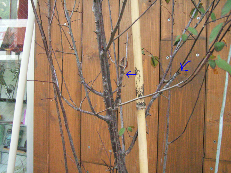 自動車板金塗装と全然話が違うのですが、当店玄関横にある「スモモの木」(だと思うのですが…)に芋虫が3匹付いています。見事に木の枝と調和してしまっているのですが、写真中に二匹居ます。