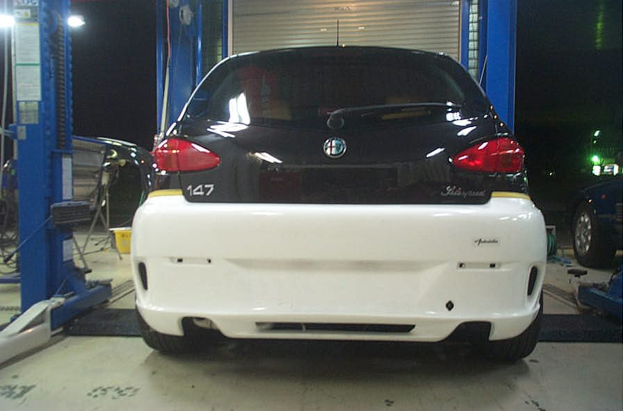 既に画像ではエアロ(社外品FRPリヤバンパー)装着済みですが、これだけでも結構苦労しました…。 今回のアルファも千葉よりの御来店になります。最近遠方の方が重なってますね…。先日は御足労頂き有難う御座いました。