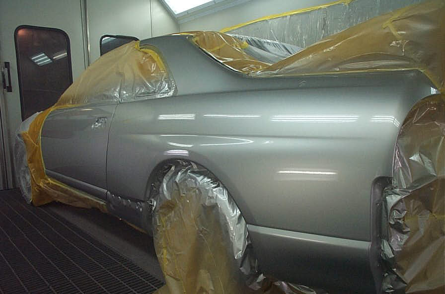 肌を悪くする方法としては、まずクリアーのシンナー量を通常の15%(これも色々と変えますが)から12%程に減らし、ガン距離をいつもより3センチ程離してぬります。決して「汚く」塗るのでは無く、「新車肌の再現」なので適当に塗る訳ではありません。と言うより、いつも以上に慎重になります。 本塗り前に各調整はしておいたので仕上がりは良く出来ていると思います。是非楽しみにお待ち下さい。