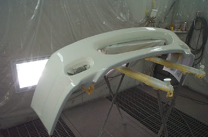 バンパーは新品の状態からプライマーサフェーサーが塗布されていましたが、下地の状態が良く無かった為に、バンパー一本下地処理をし直しました(研磨→サフェーサー全面塗布)。