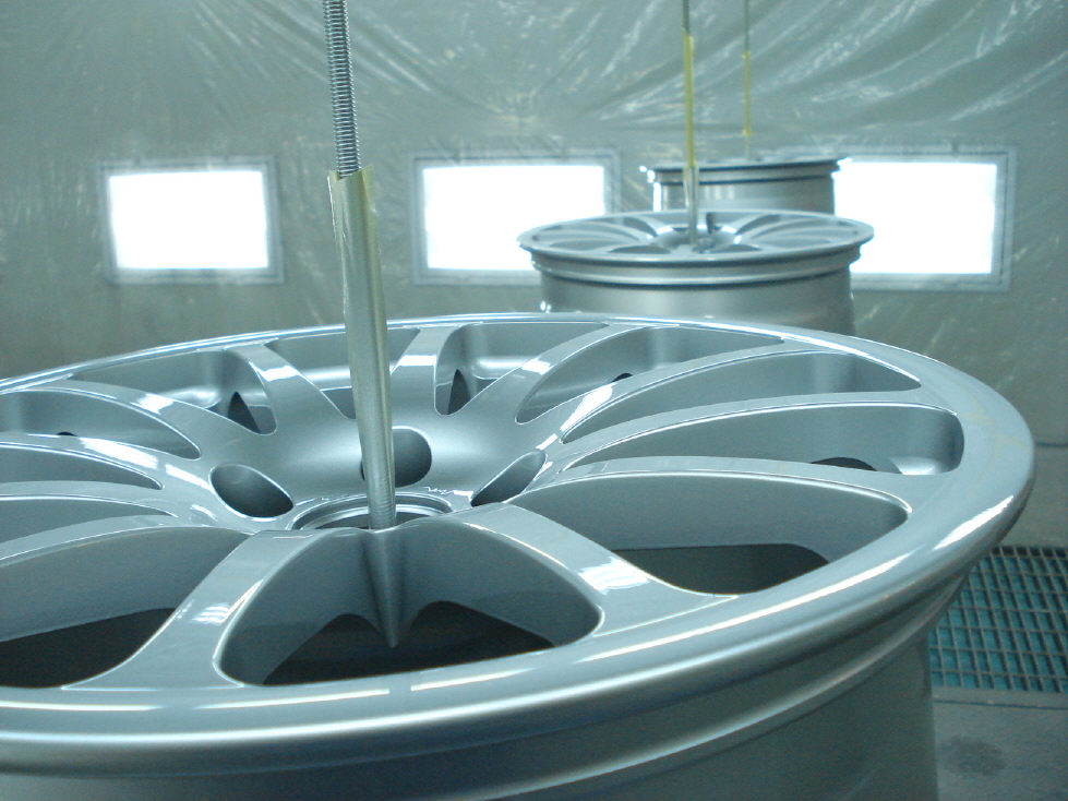 元々の状態としては、多少の擦り傷はありましたが新品同様の状態だったので少し勿体無い気もしましたが、オーナー様的にはどうしても今回のシルバーで車体色に合わせたかったとの事です。それにしても太いホイールですね…。