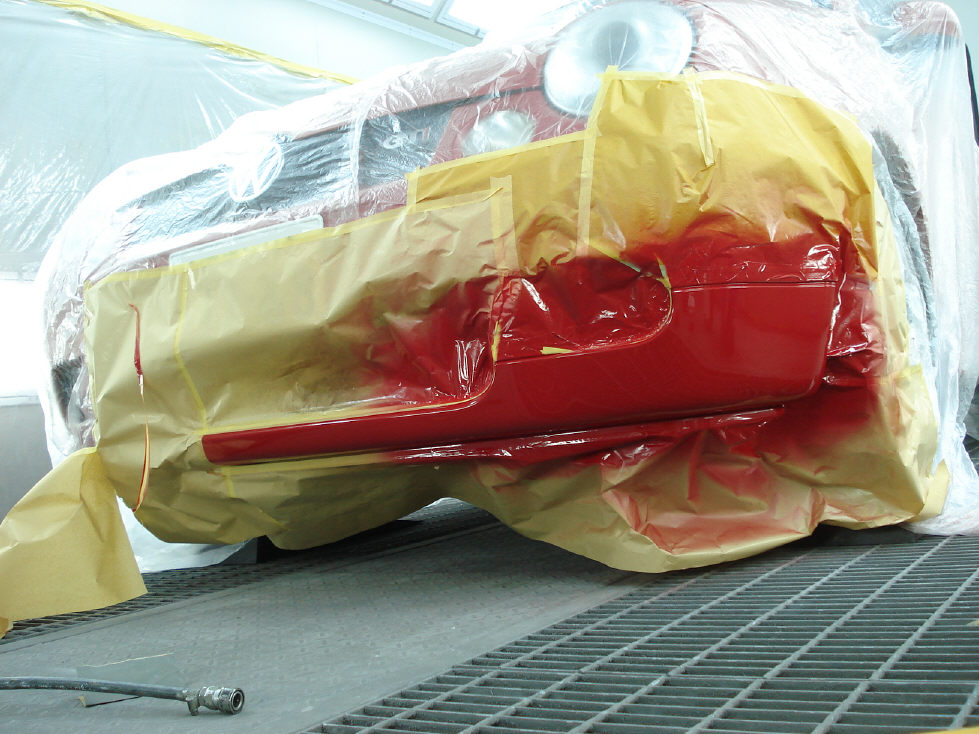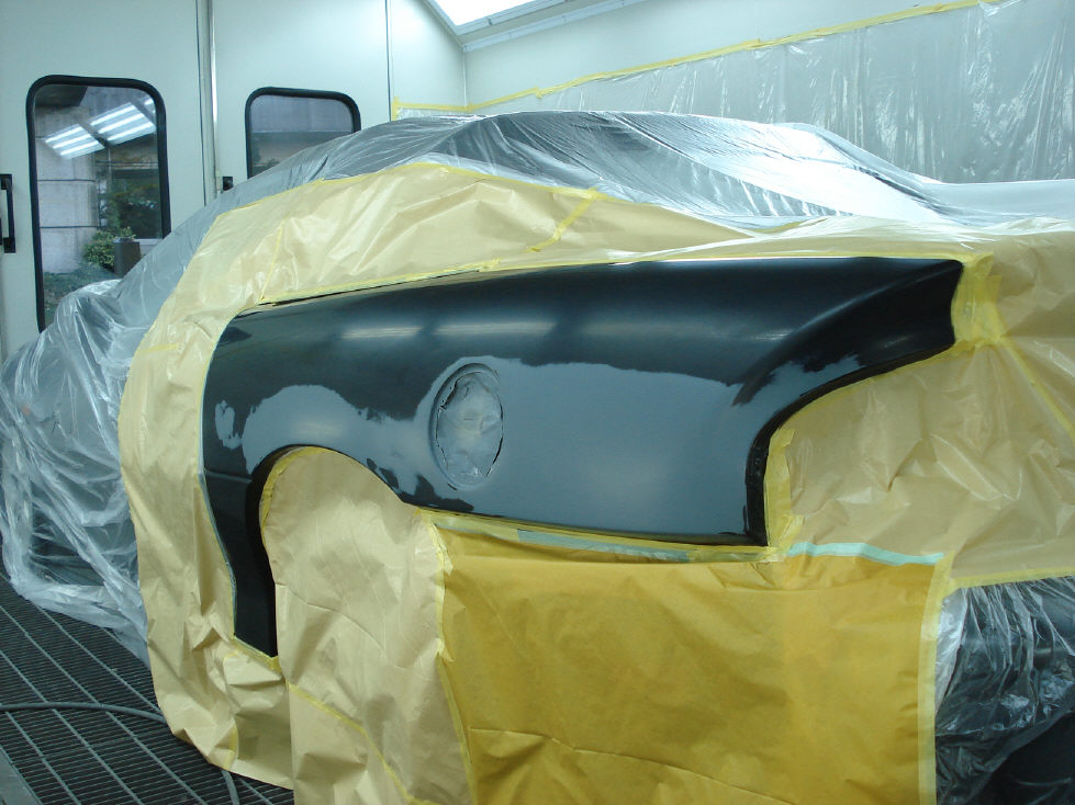 そしてこの後強制乾燥をして塗膜を硬化させ、本日各部ピラー(窓枠)を塗りました。ピラーは半艶の黒で、入庫時には錆までも発生していたりもしましたが、既に上品な黒に仕上がっております。