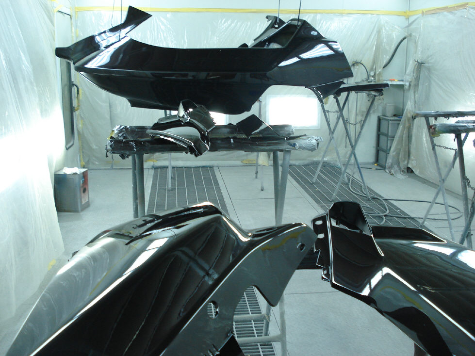 こちらのオーナー様も常連の方ですが、実際に外板パネルの塗装を承るのは初めてになります。最初はヘッドカバーの結晶塗装を御依頼頂き、その後800R(デュポンプラスチックプライマー)などの自家塗装用品を買って頂いたりして、写真内のヘッドライトグリルはオーナー様自らの塗装だったりします。