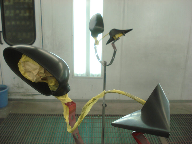 こちらも大変お待たせしております。BMWのMタイプミラーですね。既に先日本塗りを終えております。ご安心下さい。