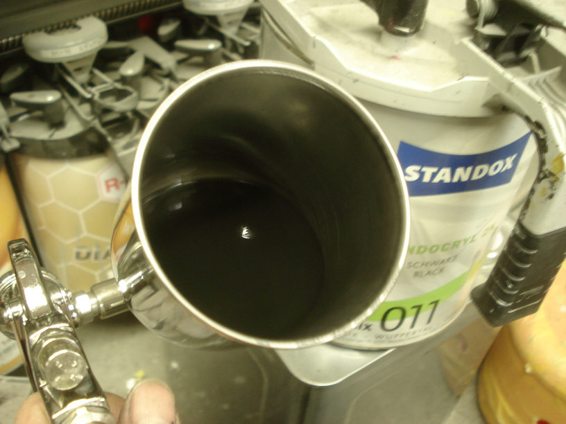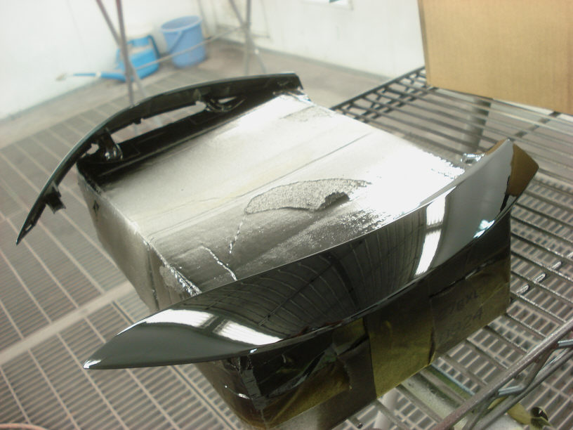 画像はベースコート(黒)が塗布された状態です。これよりいよいよクリアーを塗布します。