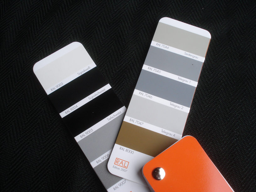 グレーは、画像にあるRAL色見本帳の「7047」で、白はスタンドックスの原色の白をそのまま使います。以前塗らせて頂いたサラウンドスピーカーセット(×6個)に採用した白ですね。まさに混ざりっけの無いピュアーなホワイトになります。