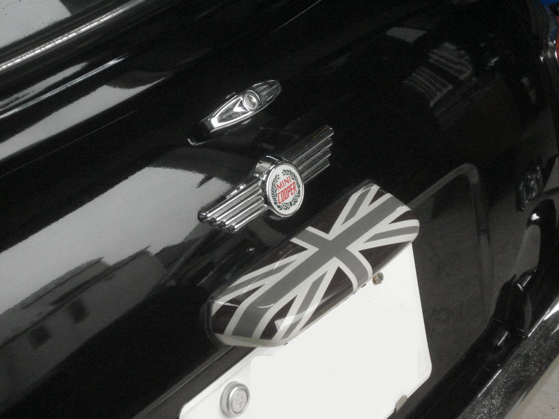 ちなみにローバーミニの事を余り知らない方であれば不思議に思うと思いますが、ミニは純正の形でフロント部に2本の「牽引フック」が装着されています。純正の牽引フックは単なるユニクロームメッキの鉄の輪っかでかなり地味なパーツですが、そこをこんなパーツに替えると全くイメージが変わってしまいますね…。