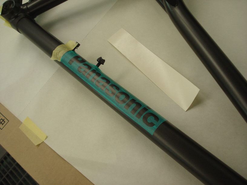 -1348- Panasonicの自転車フレーム 文字部のベースコート塗装