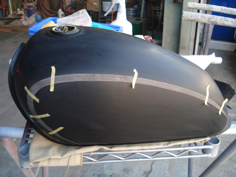 CBのタンクはいよいよ残る作業のライン入れの開始です。