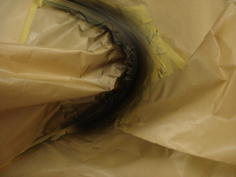塗装のマスキングは、見た目は覆っているように見えても、若干の隙間があればそこから塗装ミストはどんどん入ります。適当で良さそうで実際には「空気」をも遮断するようにピッチリ貼らないといけなかったりします。