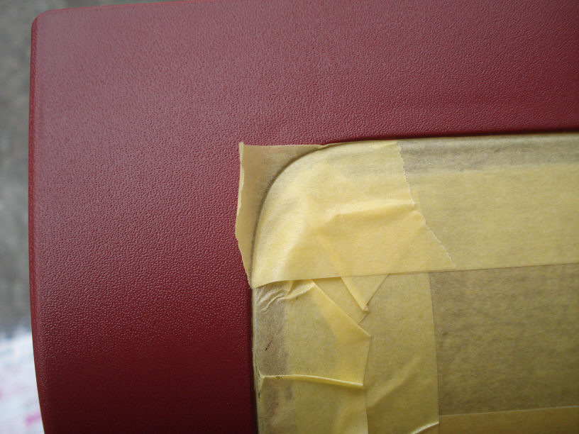 今回のようなケースでは、マスキングの基本は「差込み」になります。極力中にテープを差し込んで、余った分を折り返します。 画像では、テープのこちら側がベタベタする方ですね。