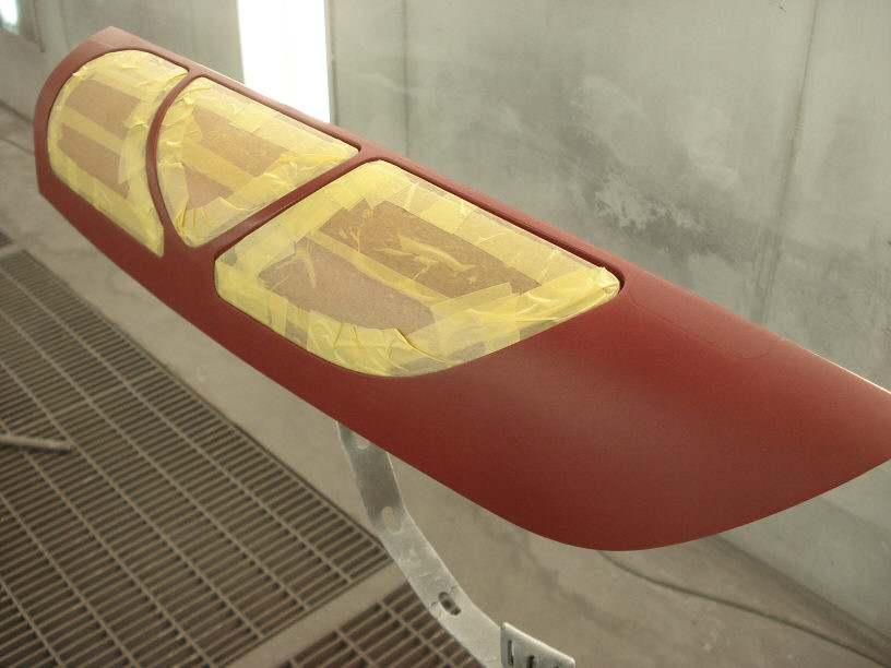 画像は塗装前の状態で、曇っているのは足付け処理が完了しているからですね。裏側はマスキングしてあります。