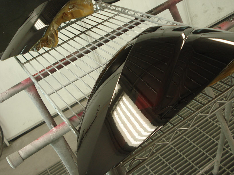 画像は本塗り直前ですね。白く曇っているのは足付け処理をしたので全面傷だらけな状態だからです(こうしないと剥がれますので大丈夫です)。