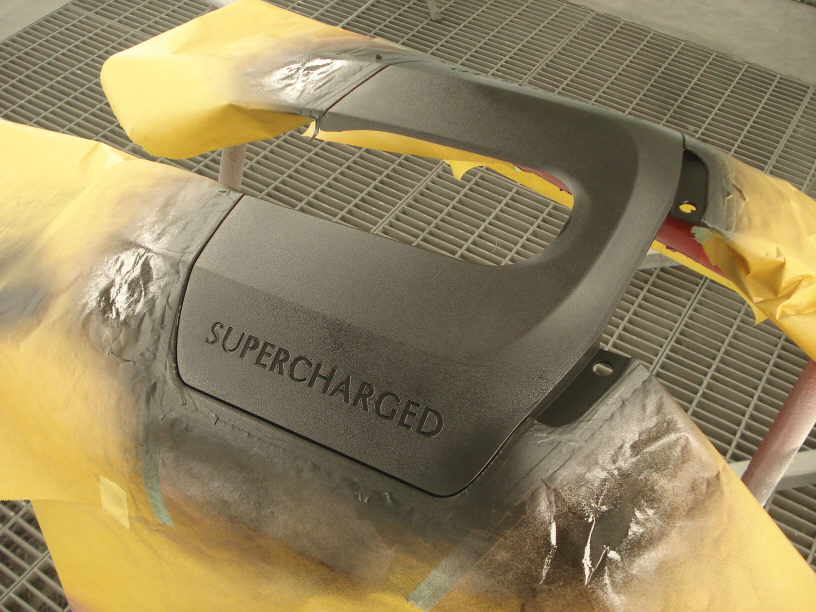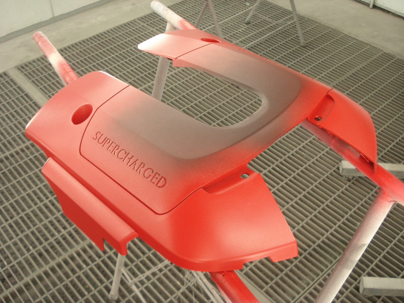 -1320- ジャガーXFのエンジンカバー(プラスチック)本塗り開始です。