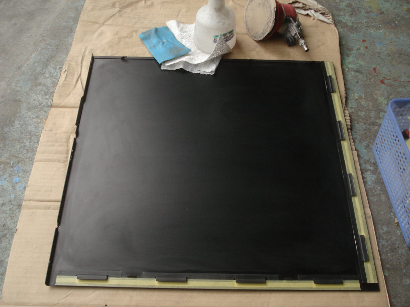 適当に「密着剤」使って済ませれば、アルミの素地調整作業やプライマー塗装も必要なくそのままトップコート(今回の場合は黒+板艶&艶消しクリアーですね)塗って終わりなので、これでは儲かって仕方ありませんが(本当。その日の内に全部終わります)、それは出来ないですね。