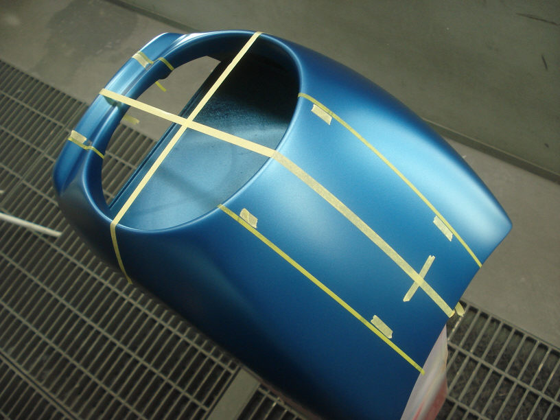 ただ、シンナーでふき取ったりは出来ません。下に塗ったブルーメタリックは自然乾燥されただけの状態でして、またメタリックカラーですのでペーパー掛けやコンパウンドなどで削ったりは出来ません。