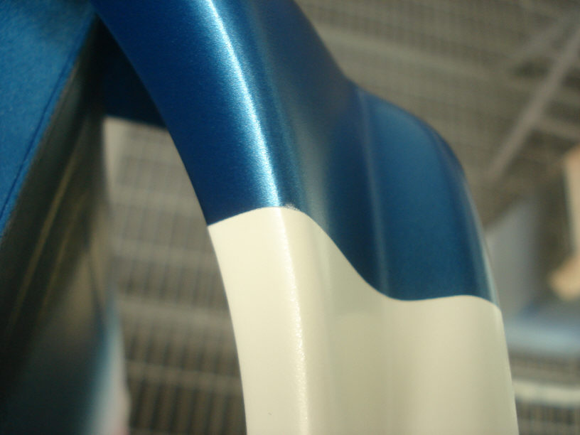恐らく殆どの方は、最初に塗ったベースのブルーメタリックからいきなりこの状態を想定する筈です。 ラインの位置だしやマスキング作業の時間は余り想像出来ませんよね。実は殆どがそれの時間でして、塗装時間自体はたった数分なんですよね。